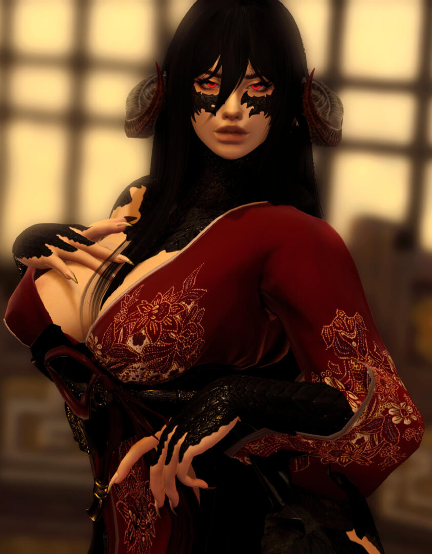 Shizuka Morimoto was born beneath the shadow of the Moks, a tribe veiled in secrecy, where the art of espionage was not just a skill but a way of life. From her earliest years, she learned the delicate dance of shadows—how to listen without being seen and gather whispers like precious jewels. But the plains of the steppe were never enough for her; Shizuka craved the thrill of the unknown and the allure of distant horizons.At 20, she slipped away from the steppe and into the bustling streets of Kugane, shedding her past like old skin. "Morimoto" became her new name, a mask as elegant and deceptive as the woman who wore it. In the city, she opened a teashop—a quaint and charming façade for something far more dangerous. There she embraced her new life as an Oiran, weaving herself into the desires of the influential and drawing secrets from them like venom from a wound.Yet, beneath the silken exterior lies her true talent—an unrivaled mastery of poisons. Her hands craft venom as exquisite as it is lethal, each commission a work of art, every poison tailored to its victim with precision and grace. Those who seek her services know her only by reputation, never suspecting the serene teashop owner as the weaver of their demise.Shizuka moves through life like a shadow, elusive and untouchable, her motives known only to herself. Though she serves her tribe, her heart beats for power—coiled and waiting, like the serpents she so admires. Secrets are her currency, and she deals them as skillfully as she brews her poisons, always leaving her clients and victims alike wondering whether they’ve encountered an ally, or a serpent in disguise.Disclaimer: The Price of PleasureTo indulge in Shizuka’s company is to experience both ecstasy and risk. Raised as a poison maiden, her body has been carefully cultivated to carry venom as potent as it is seductive. The allure of her touch, her breath, even the kiss of her lips, is laced with danger. Those who grow too intimate may find themselves lost in a world of vivid hallucinations, overwhelmed by pleasure while poison seeps into their veins.Her body releases endorphins and pheromones that heighten every sensation, weaving a spell so intense that her partners are unaware of the creeping venom. Even as it takes hold, they remain entranced, too consumed by the euphoria of her presence to notice the deadly embrace. With Shizuka, the line between passion and danger fades, leaving those who dare to share her bed forever changed—if they survive.